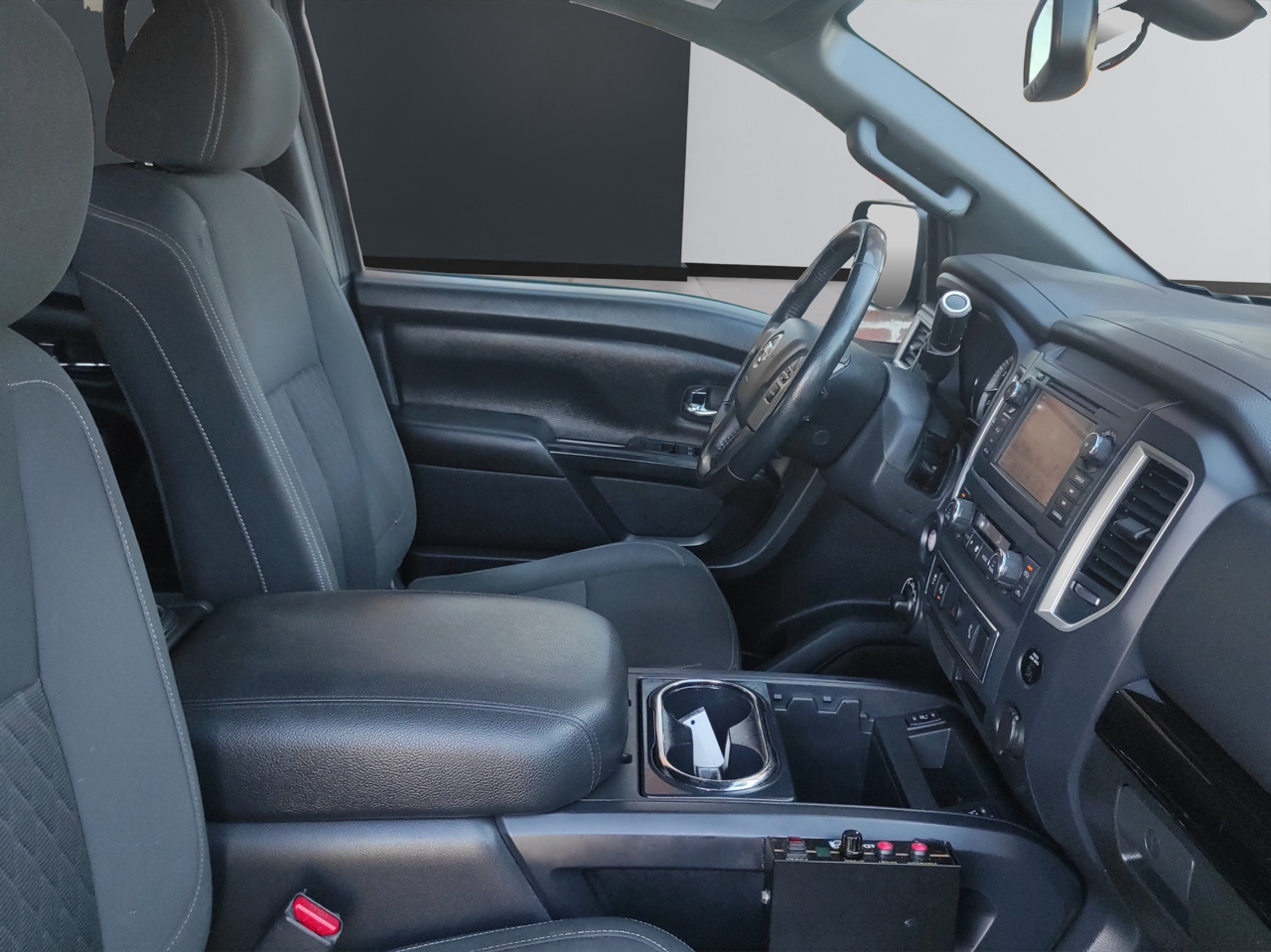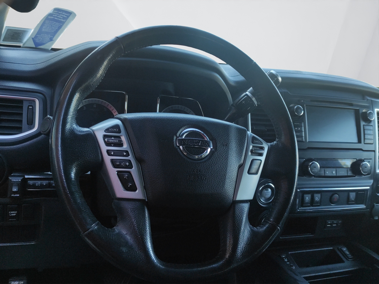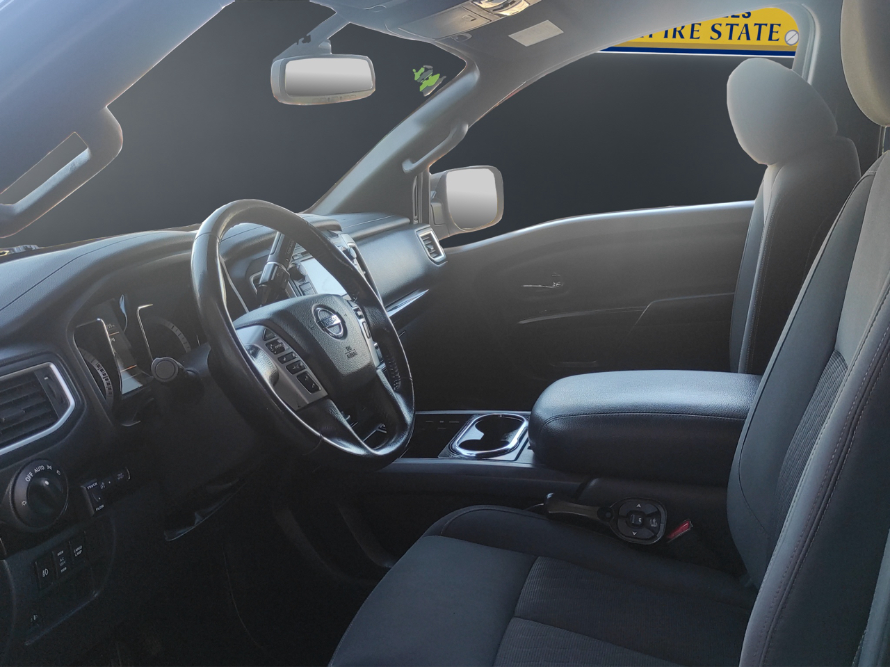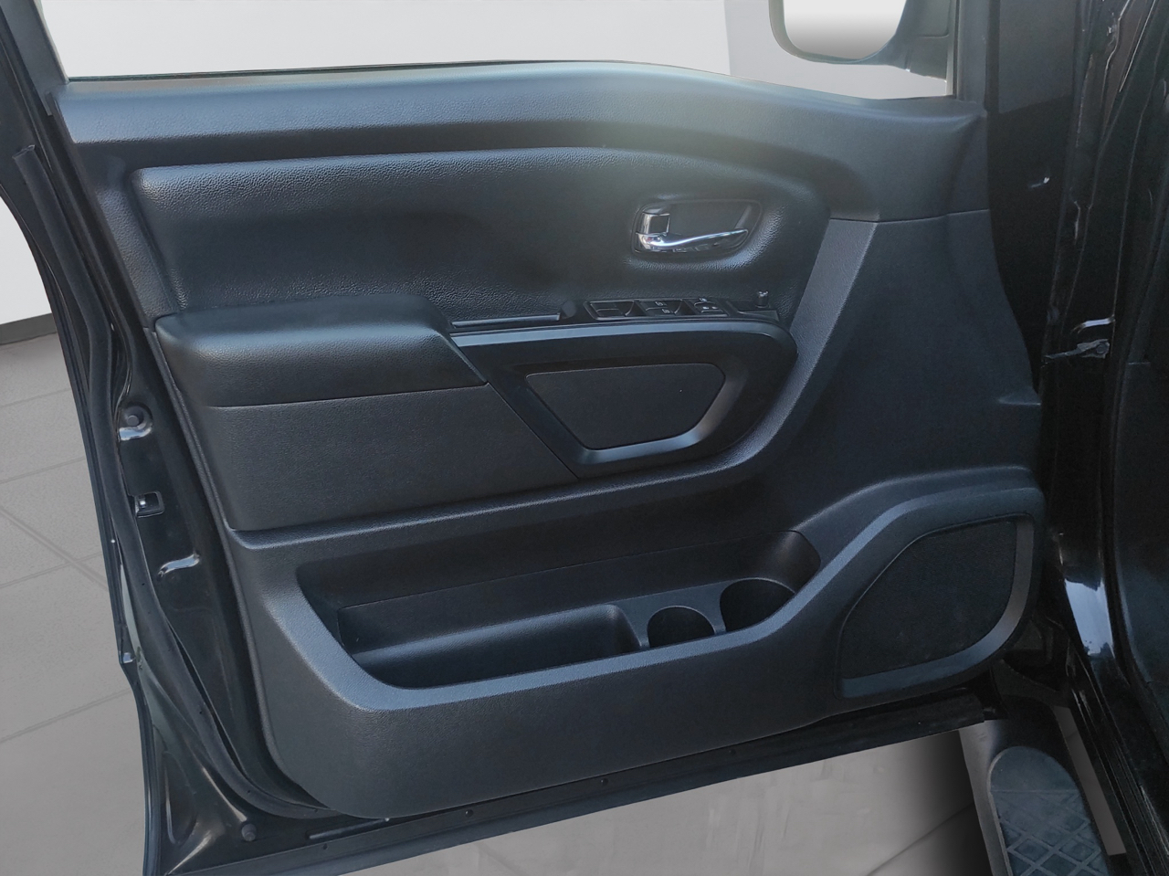 With its stylish chrome accents, deep tinted glass, and cargo lamp, the exterior of the Titan is sure to turn heads wherever you go. The steel spare wheel and full-size spare tire give you added peace of mind on the road. From the black side windows trim to the chrome door handles, every detail of this truck exudes quality and durability.