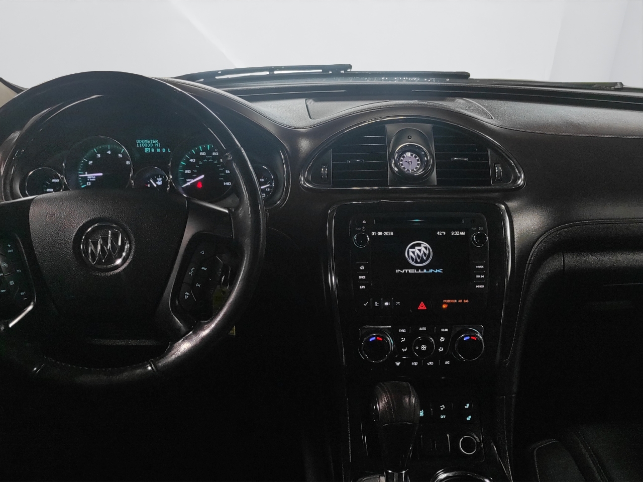 Step inside this luxurious SUV and you'll be greeted by heated leather seats, a leather-wrapped steering wheel with Mahogany wood accents, and a tri-zone automatic climate control system to keep everyone comfortable. The quiet interior, thanks to Buick's exclusive QuietTuning process, allows you to enjoy your favorite tunes on the standard speaker system without any outside distractions.