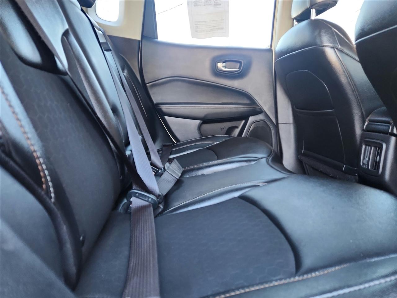 The sleek white exterior is complemented by black accents, giving this Compass a sporty and modern look. Whether cruising through the city streets or tackling off-road trails, this Jeep is sure to turn heads with its stylish body-colored bumpers and chrome grille.