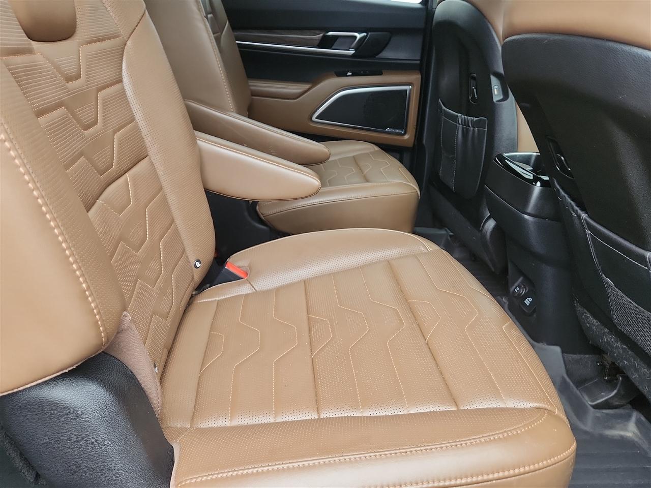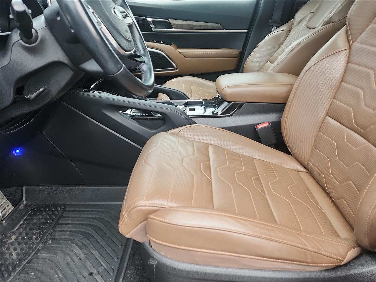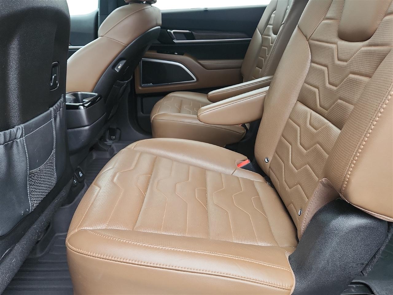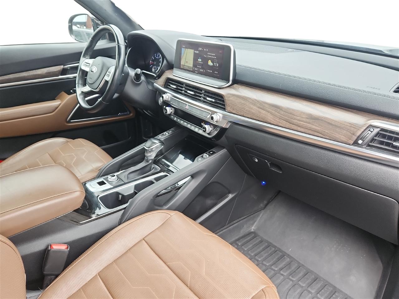The exterior of this vehicle is a true showstopper, featuring 20" Black Finish Sport Alloy wheels, chrome accents, and a power liftgate for added convenience. With a deep tinted glass and LED headlights, this Telluride not only looks striking but also ensures a safe and comfortable ride for you and your passengers.